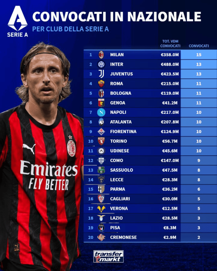 目前市场上好的配资公司 本月贡献最多国脚的意甲球队: 米兰15人居首, 国米、尤文前3